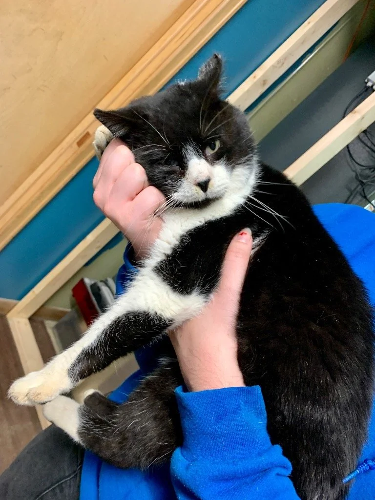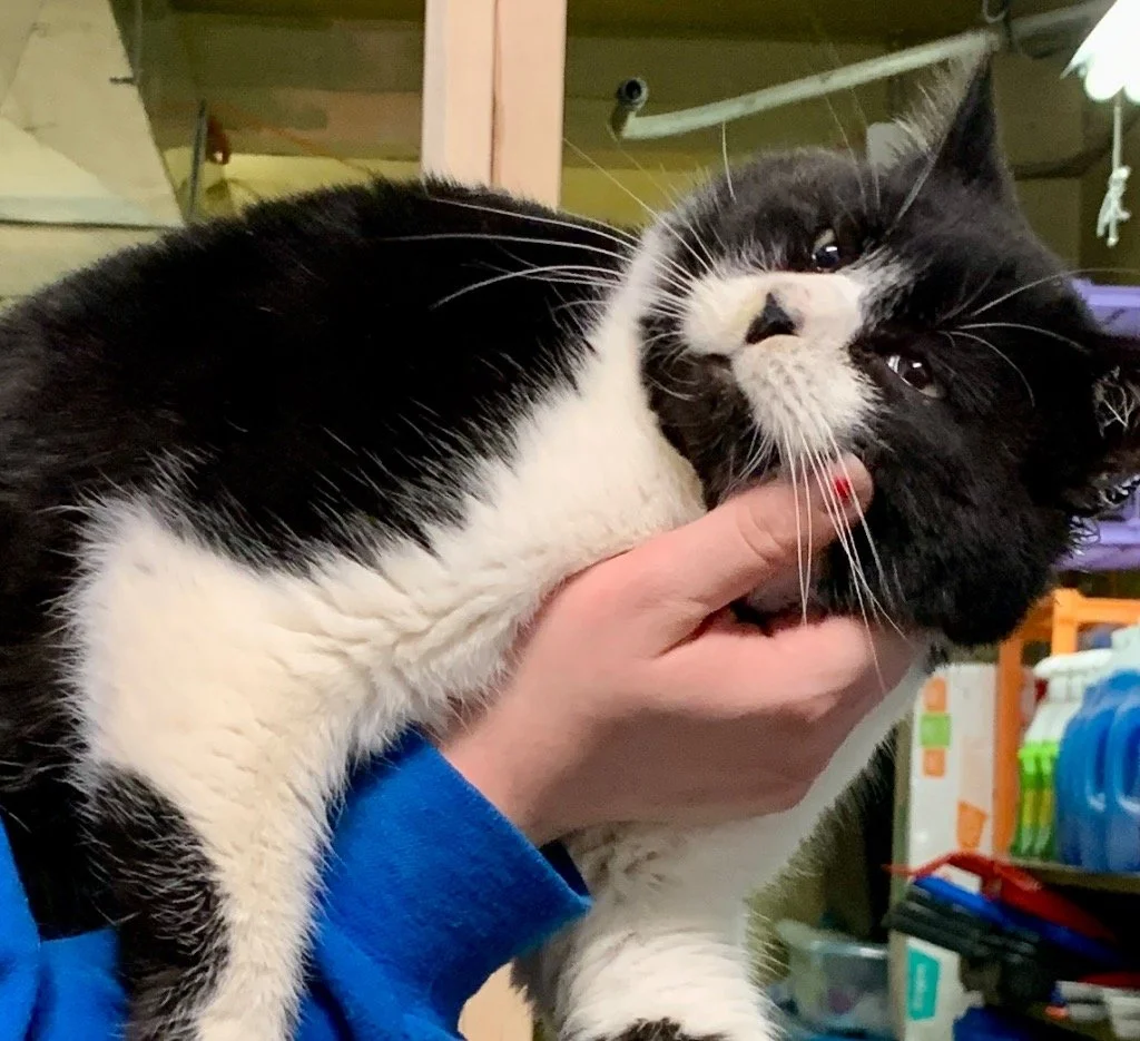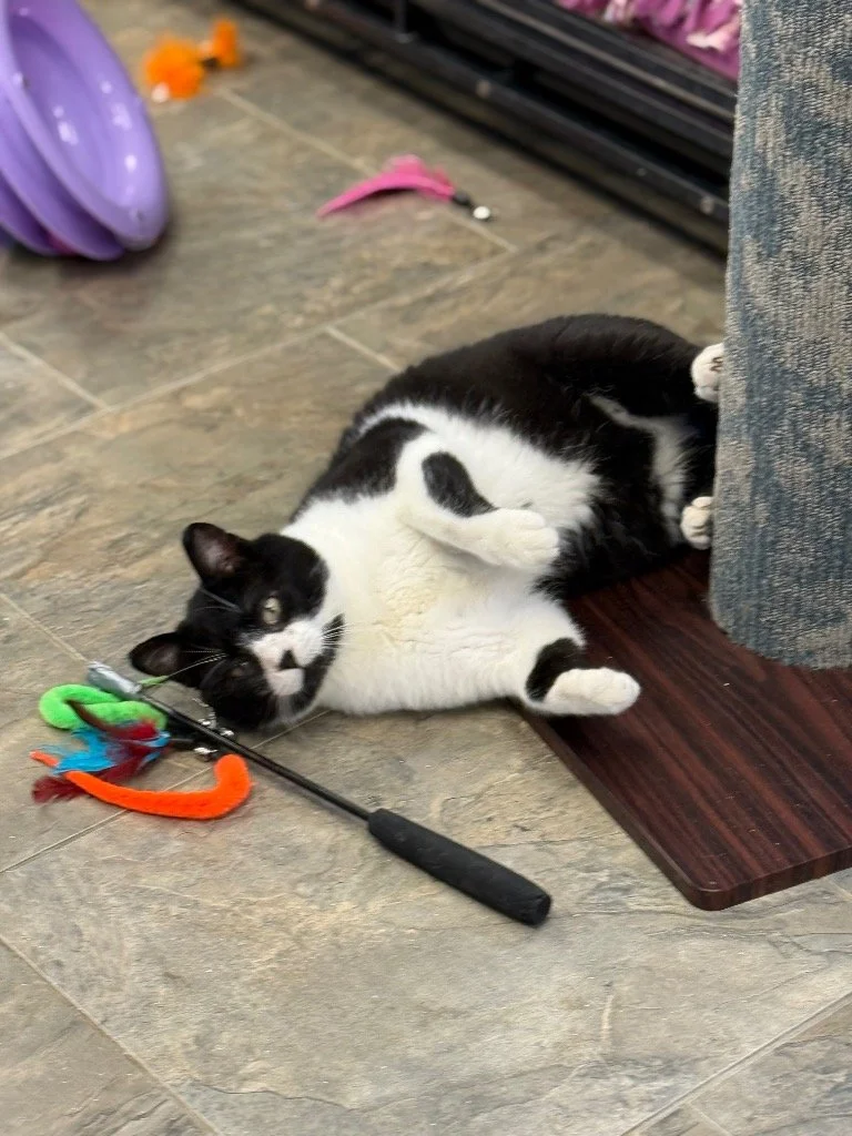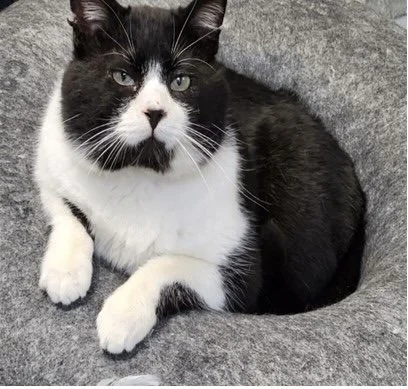 ABOUT: I Think I look like Sylvester the Cat! Some volunteers call me Panda. I answer to both as I love lots of pets and attention. I am a sweet laid back cat. After a move I was tossed out and abandoned. Looking forward to a new stable home to manage.