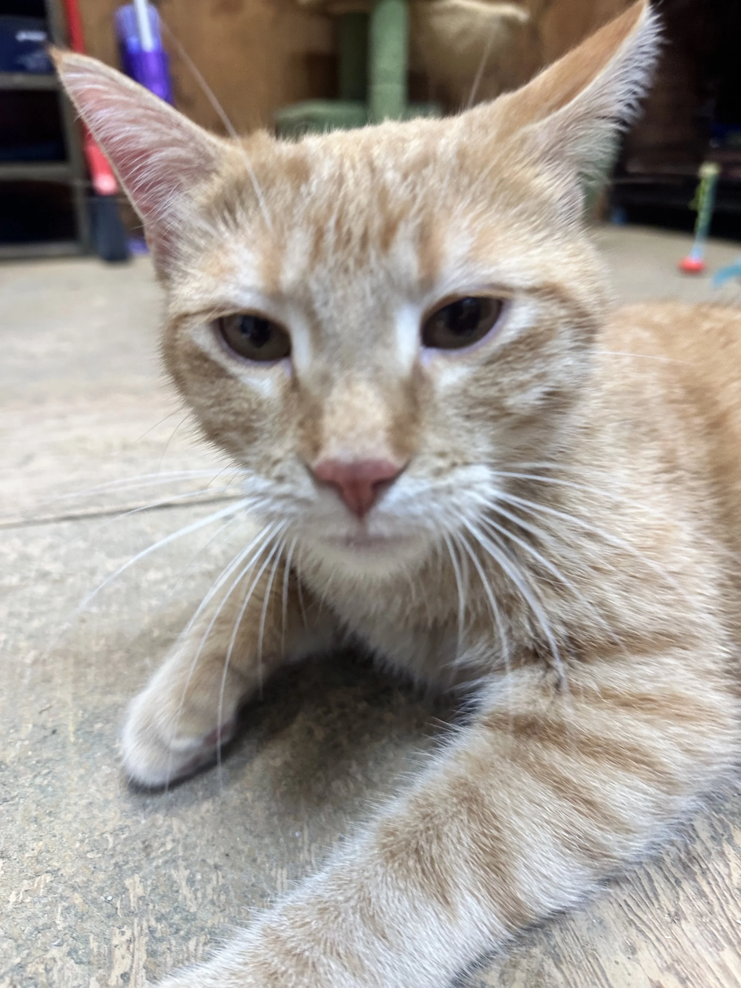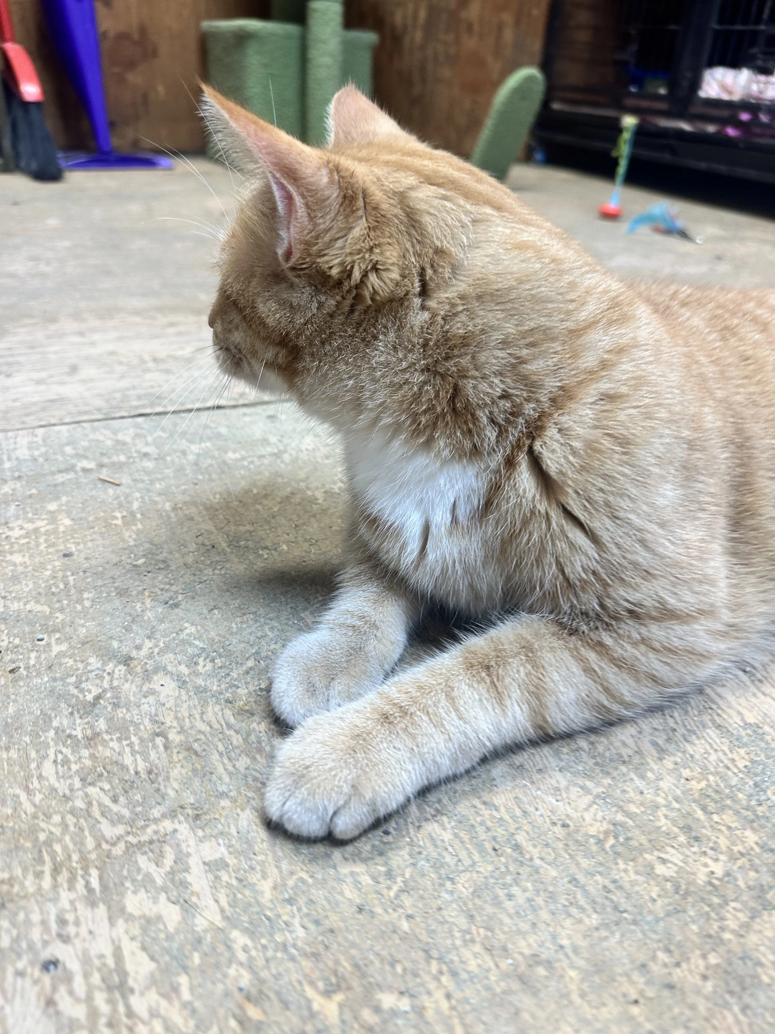 ABOUT: Garfield is such a lover that it makes it difficult to photograph him. With no regard for your photo goals, Garfield is solely concentrated on snuggling and purring. He even purrs long after you are done petting him. A very happy guy.