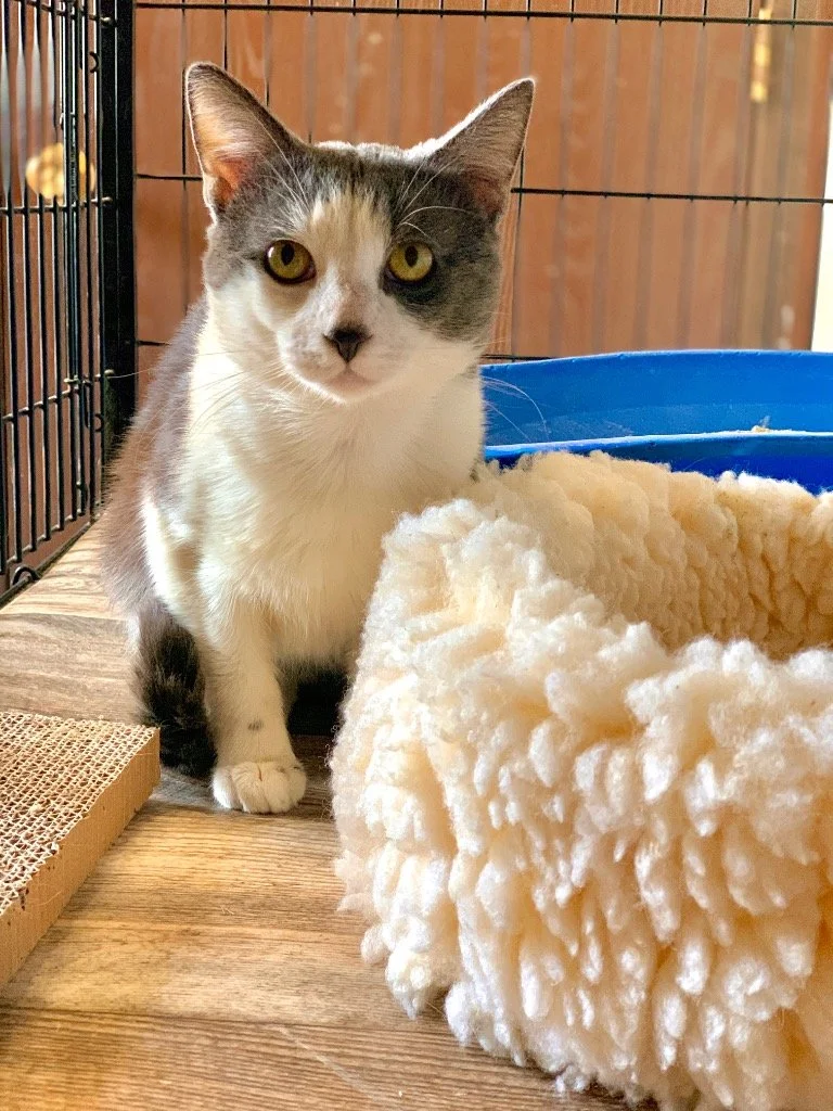 ABOUT: Sky is a beautiful, sweet, shy, kitty who was brought to us from an unfortunate abandoning situation. It took some time but Sky is out of his shy shell and asking for pets and love.