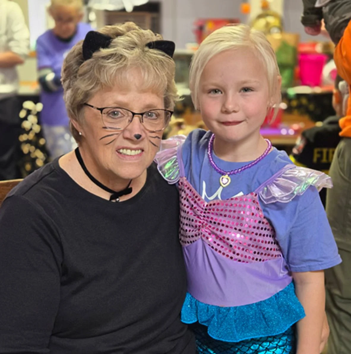 In 2023 the rescue invited me to serve on the Board of Directors. I initially mentioned that I didn’t have a cat, but I did have plenty of life and work experience to contribute. I have truly enjoyed getting to know everyone, learning about the rescues mission and watching it grow into what it is today. I now have a cat of own and even dressed a cat for Halloween. The photo above is a picture of my granddaughter, Ellie and myself on Halloween. I recently retired from the Kossuth County Attorneys Office and look forward to having more free time for my family, friends and things that I love, like the rescue.